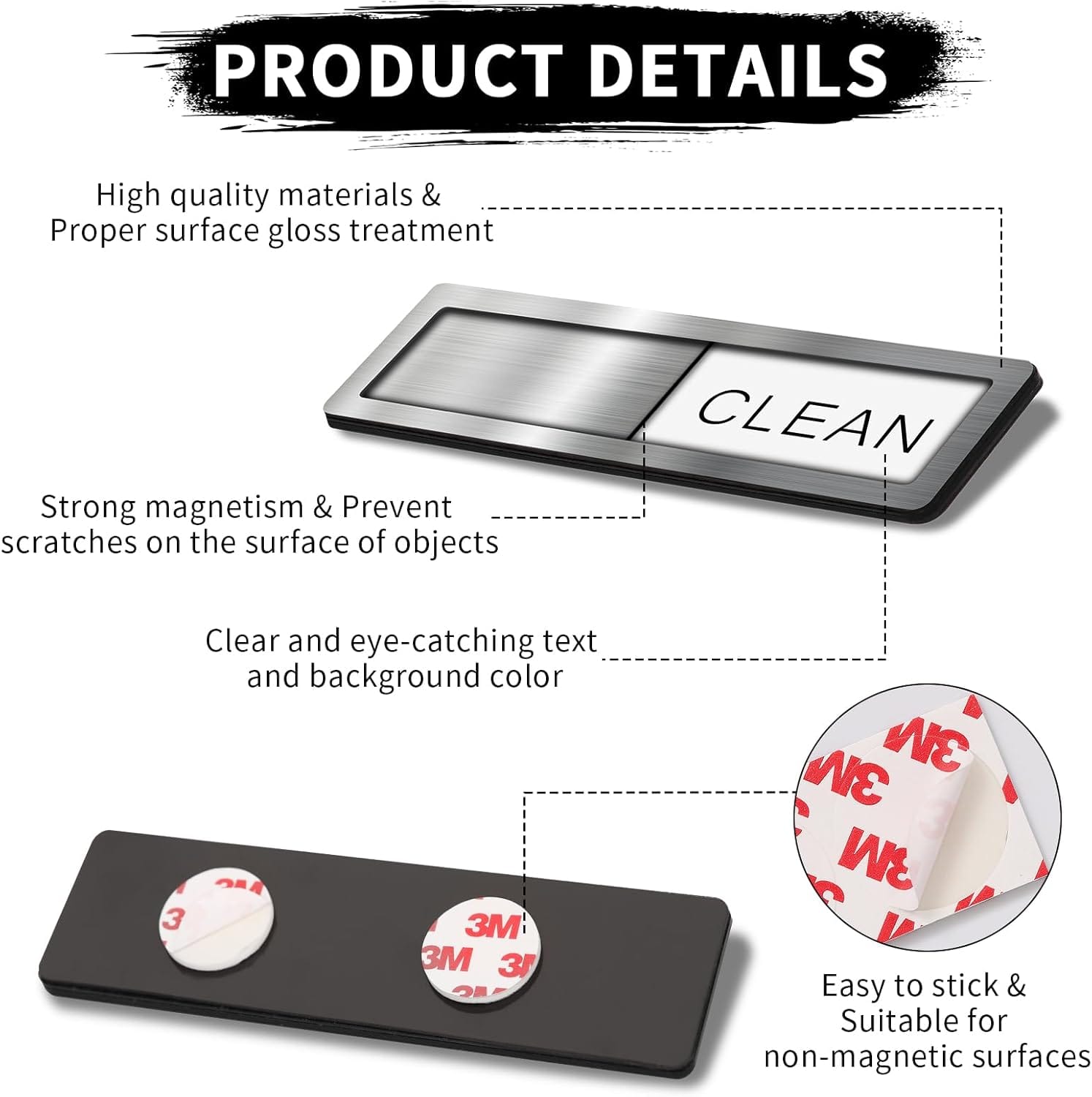 - ã€ÂEasy to use】This dishwasher clean dirty sign is easy to operate. There is a “clean” indicator on one side and a “dirty” indicator on the other side. All you need to do is slide the slider to switch the dishwasher’s state, and then it will be firmly fixed in place.